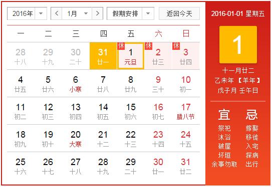 2016年1月1日(星期五)為國家法定節假日。